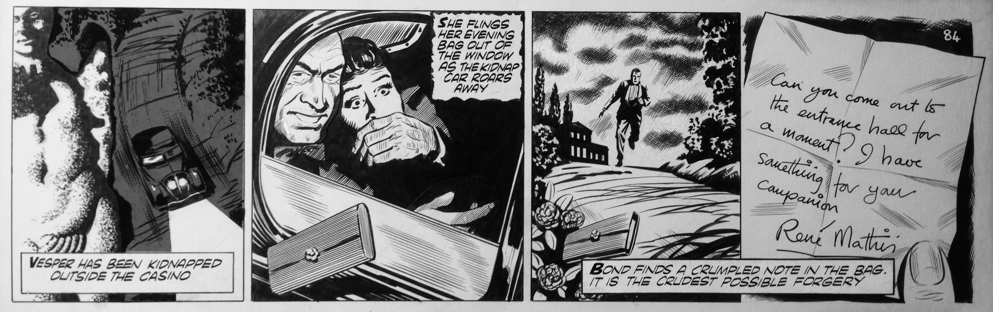 This was the very first strip cartoon of Ian Fleming’s James Bond which appeared in the Express from July 1958 to December 1958. The writer was Anthony Hearn.